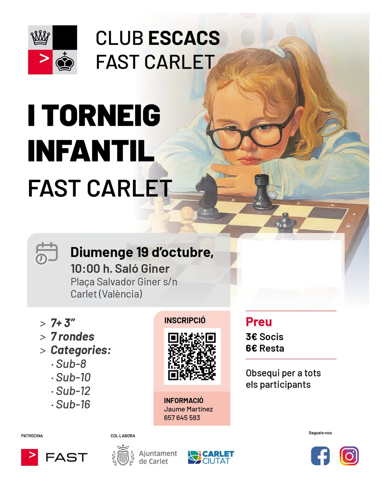 ♟ I TORNEIG INFANTIL D’ESCACS FAST CARLET Oct 19 10:00 am - 2:00 pm ♟ I TORNEIG INFANTIL D’ESCACS FAST CARLET 3€ – 6€
